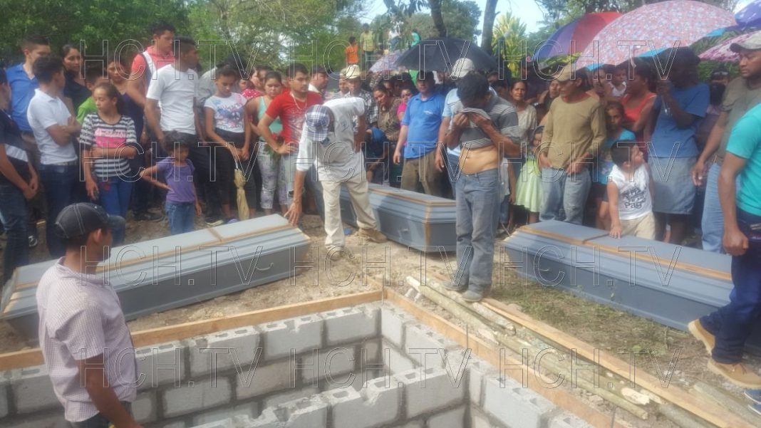 La tarde de este viernes se le dio cristiana sepultura a María Clementina Soriano y dos de sus hijas, Brenda Xiomara y Maria Rosa, víctimas de una explosión suscitada el jueves en el barrio La Colmena de Nueva Arcadia , Copan.