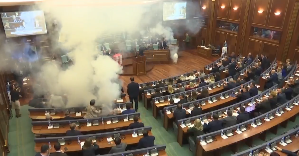 Diputados opositores lanzan bombas lacrimógenas en el Parlamento de Kosovo
