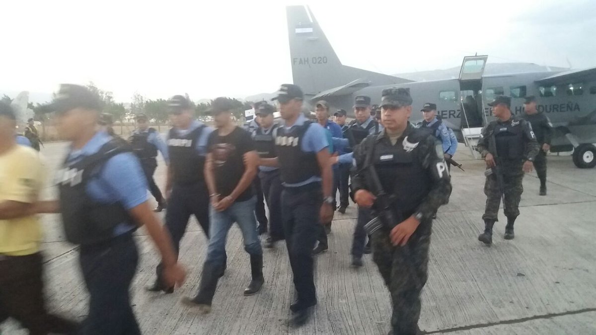 Los encausados fueron recibidos por el  contingente policial y militar en la Base Aérea «Hernán Acosta Mejía» de Tegucigalpa M.D.C., hasta donde fueron trasladados vía áerea desde Gracias a Dios.