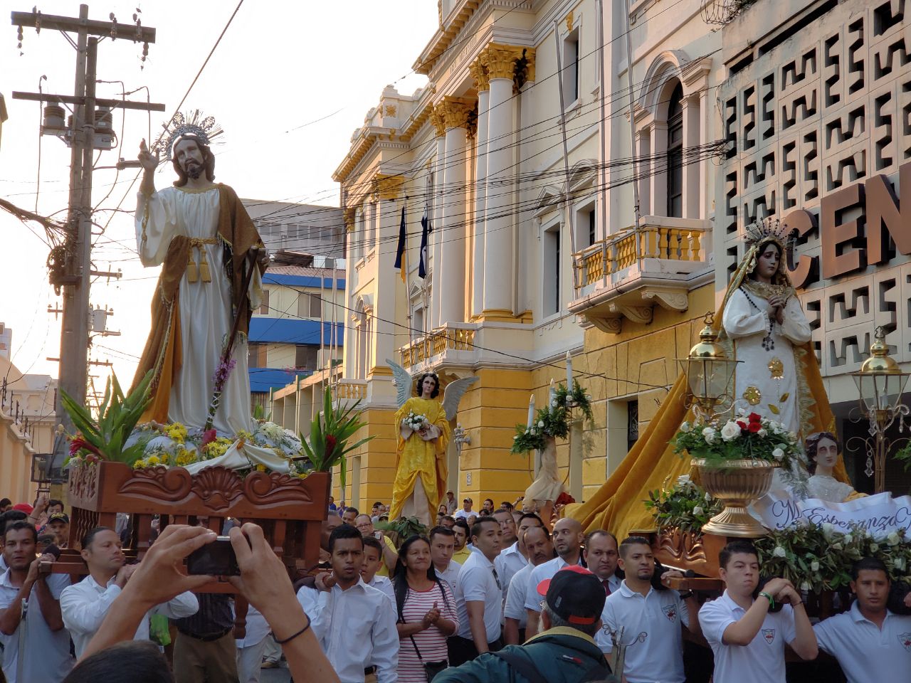¡ Tomados de las manos ! Fieles católicos de la Iglesia Inmaculada Concepción de Comayagüela celebran la Resurrección de Cristo durante las tradicionales Carreras de San Juan, Mariel Artega está en el lugar pic.twitter.com/XuALGCDOik