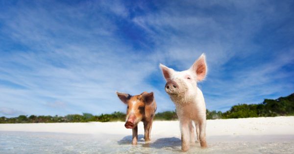 Pig Beach, la playa conocida por tener cerdos nadando en el mar
