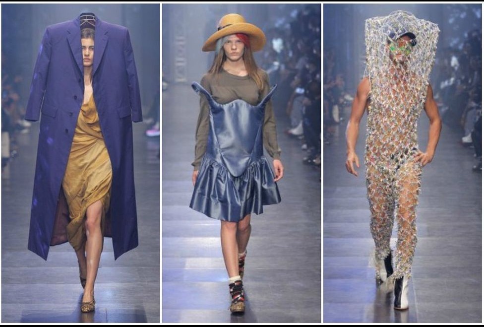 Desde sacos que cubren la cabeza, hasta modelos desfilando con cargando a otras modelos mientras desfilaban, como accesorios, son algunas de las excentricidades que se pudo ver en la semana de la moda en París.