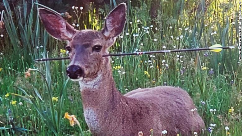 La semana pasada, oficiales del Departamento de Pesca y Vida Silvestre del estado se enteraron de un ciervo en el suroeste de Oregón que caminaba con una flecha en su cuerpo. Los policías estatales, junto con los oficiales de pesca y vida silvestre, se dirigieron al área, cerca de la ciudad de Shady Cove, para tratar de encontrar el venado y tranquilizarlo para quitar la flecha.