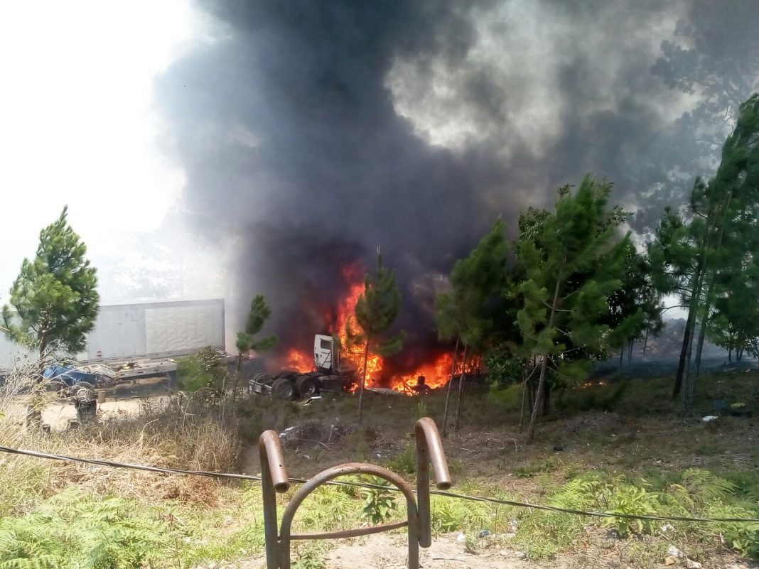 Según el informe lo que empezó como un incendio forestal, terminó consumiendo tres cabezales: un contenedor y 2 cisternas de combustible. De la misma forma el fuego también consumió un vehículo turismo.