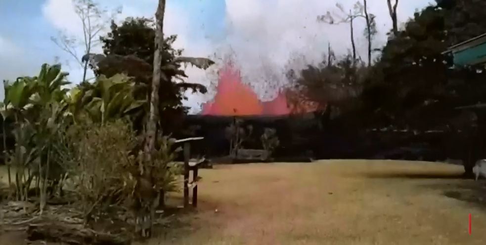 Sin embargo, se llevó una sorpresa cuando vio una fuente de lava ardiente brotando a chorros en el jardín trasero de su casa.