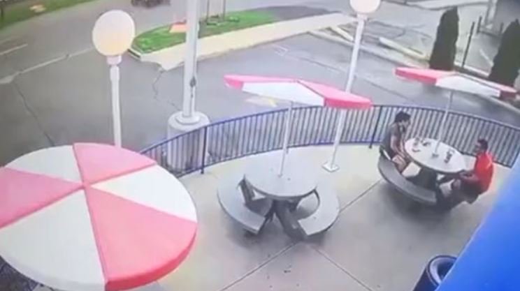 La pareja disfrutaba de la tarde soleada el pasado fin de semana. Estaban sentados en el patio de un local de la cadena Dairy Queen, comiendo algo.