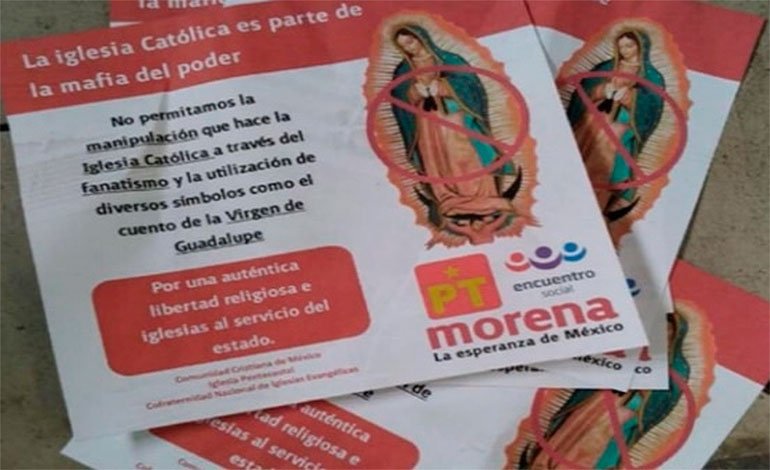 La semana pasada comenzaron a circular volantes de propaganda electoral con la imagen de la Virgen de Guadalupe atribuidos al partido Morena (Movimiento de Regeneración Nacional) que tiene como candidato presidencial a Andrés Manuel López Obrador, puntero en las encuestas.