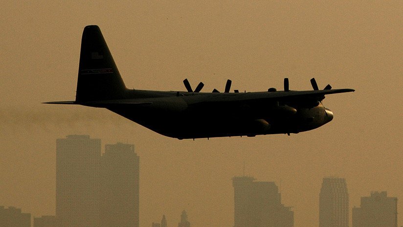 Un avión de transporte militar Lockheed C-130 Hercules, que supuestamente pertenece a la Real Fuerza Aérea de Arabia Saudita, pasó al ras por encima de las cabezas de un grupo de personas que se encontraban sobre el suelo.