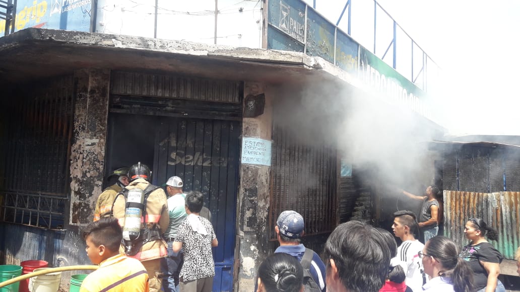 El fuego amenazante logro ser controlado por el benemérito cuerpo de bomberos quienes llegaron de inmediato al lugar evitando que las llamas se prologaran a puestos aledaños.