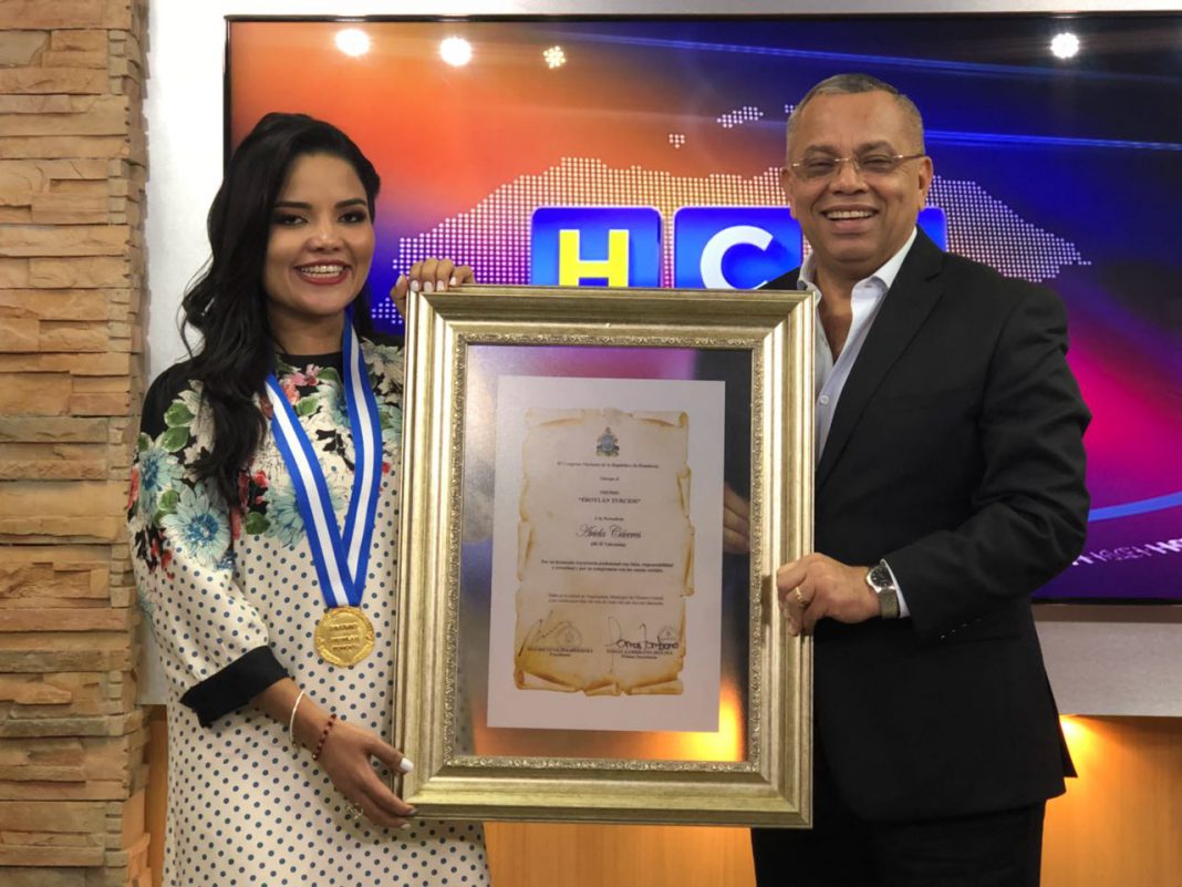 Ariela Cáceres celebra premio de periodismo con «su maestro y mentor»