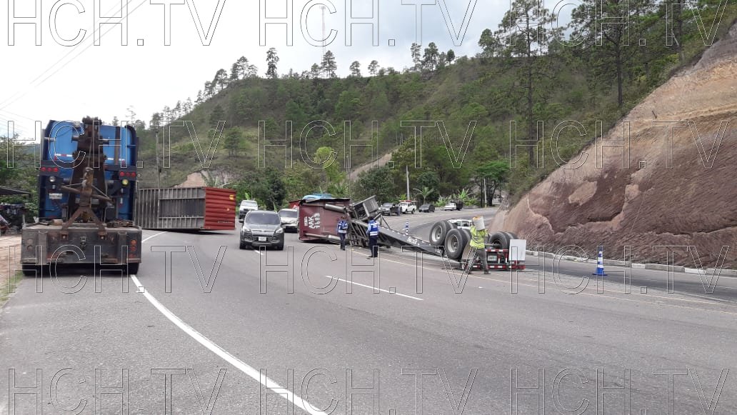 Según el relato del conductor, José Santo Reyes, la rastra se trasladaba de Puerto Cortés hacia la aduana en Tegucigalpa con una carga de bobinas de cartón, al llegar a una curva el chasis no soportó el peso del contenedor y se volcó.