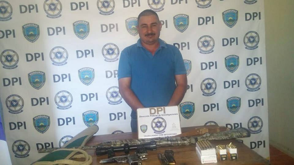 Santos, según archivo policial, ha sido detenido por el delito de posesión de armas de fuego y municiones de uso comercial en perjuicio de la seguridad interior del Estado de Honduras.