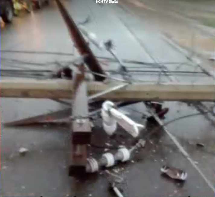 Fuertes vientos derriban cinco postes de tendido eléctrico en Naco, Santa Bárbara