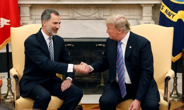 El presidente de Estados Unidos, Donald Trump, recibió junto a su esposa Melania, a los reyes españoles. En esta ocasión el Rey de España, Felipe VI pidió ayuda a Trump para que en conjunto, y en diversos aspectos, contribuir a “restablecer la democracia” en Venezuela.