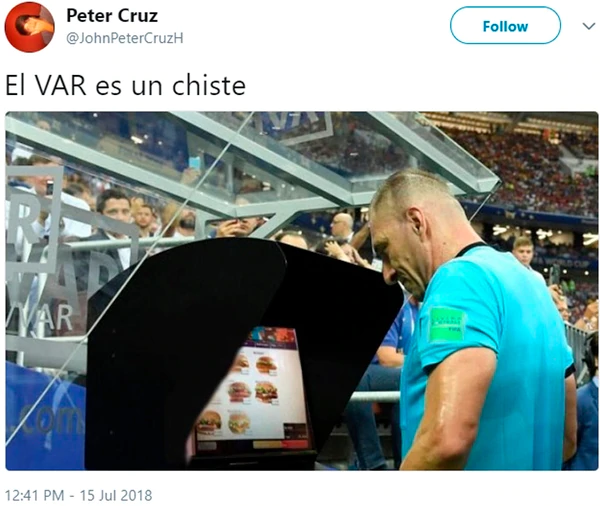 Se terminó el Mundial de Rusia 2018 y Francia se coronó campeón por segunda vez en su historia al vencer en la final a Croacia. La intervención del VAR y la actuación del árbitro argentino Néstor Pitana fueron el objetivo de las burlas.