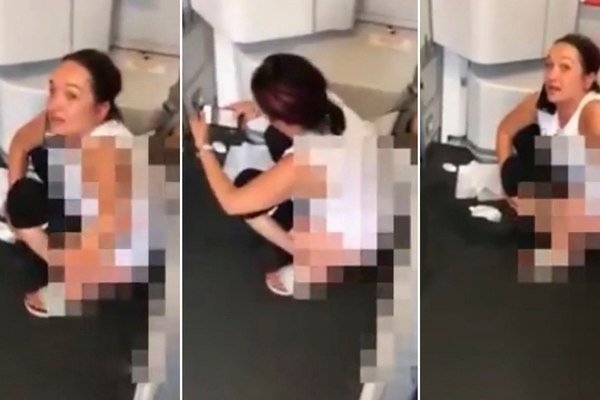 El hecho ocurrió en un vuelo de la aerolínea húngara Wizz Air, de Varsovia a Londres. La mujer, que no ha sido identificada, aparece en un vídeo en cuclillas y hablando por teléfono.