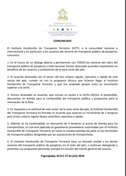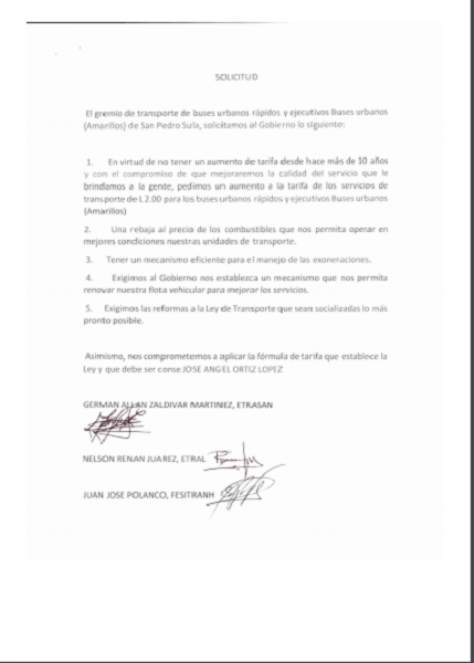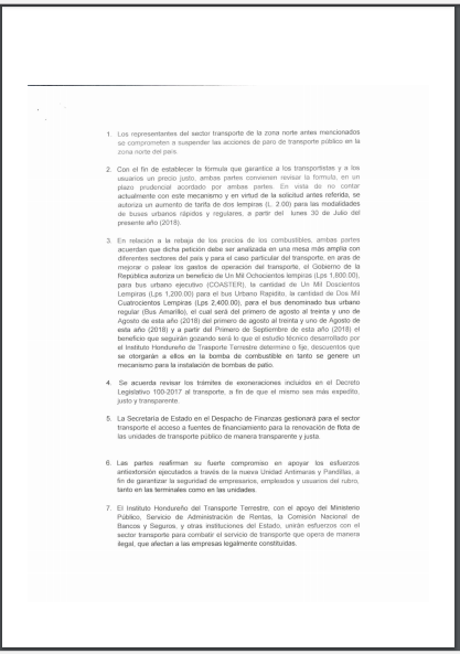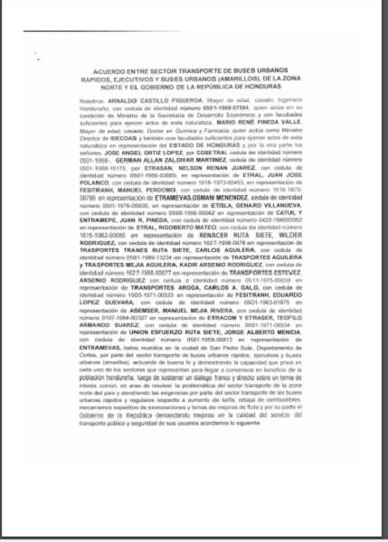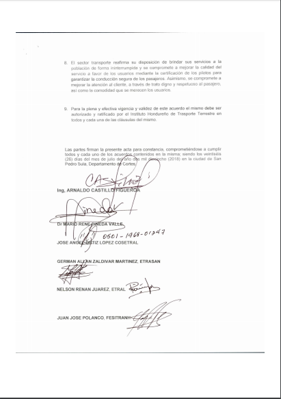Entérese en esta nota que puntos contenía el acuerdo firmado por IHTT y Transportistas de la zona norte del país