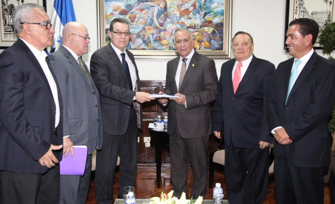 Los ex funcionarios, entre ellos Roberto Callejas, Jacobo Hernandez,Aristides Mejia y Augusto Aguilar, entregaron un documento base para un proyecto de ley.