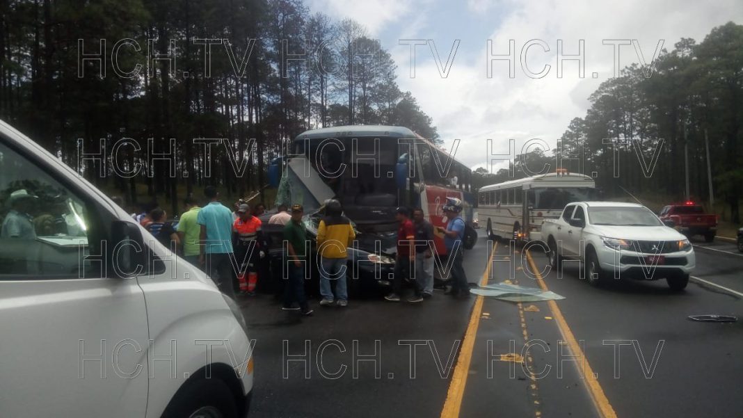 A la altura de Zambrano el turismo al parecer perdió el control yendo a colisionar contra el pesado automotor de pasajeros.