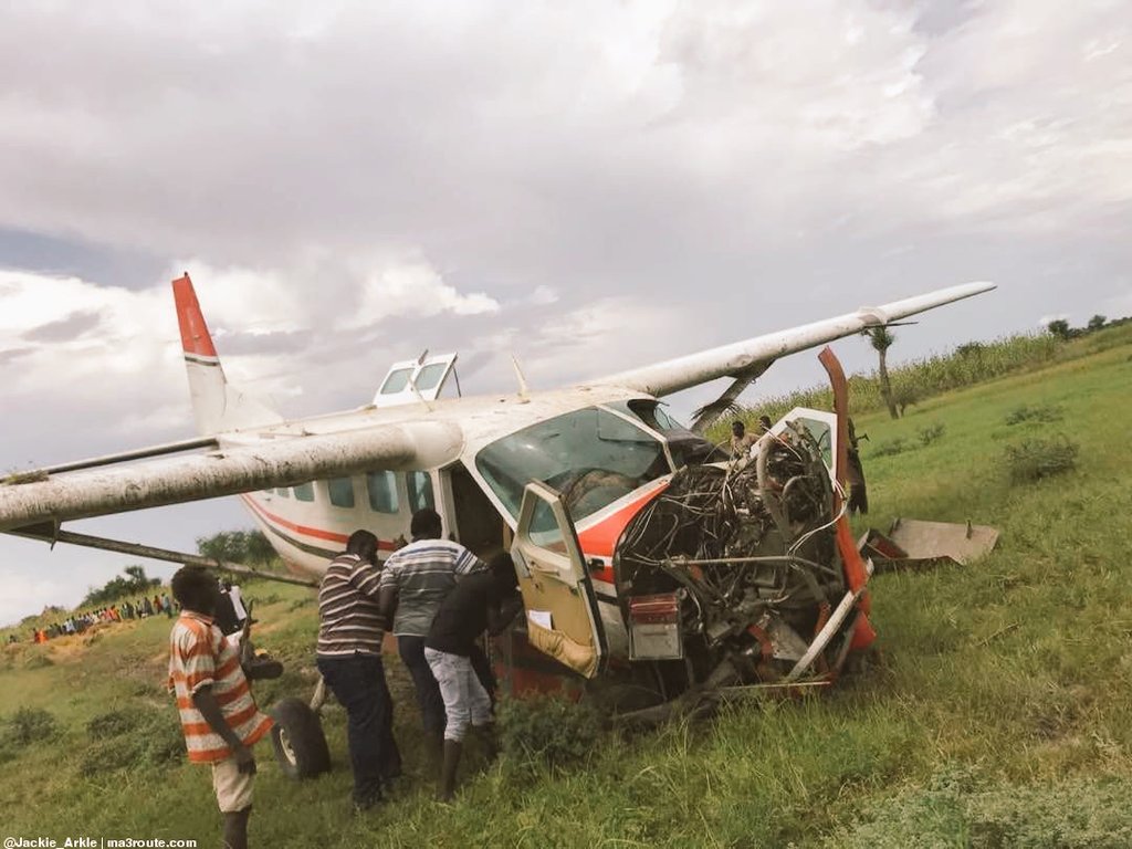 El Cessna 208B Grand Caravan matrícula 5Y-BOP, de propiedad de la aerolínea keniana Bush Air Safaris, colisionó contra una vaca que incursionó en la pista del Aeródromo de Pieri, en Sudán del Sur, durante la carrera de despegue.