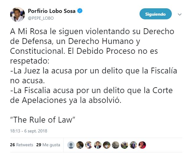 No se respeta el debido proceso en el caso de la Ex primera Dama, acusa ex mandatario Porfirio Lobo