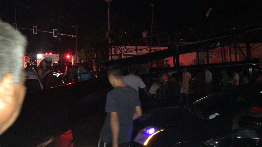 Enorme rotulo cae sobre cuatro vehículos en la avenida Junior de SPS