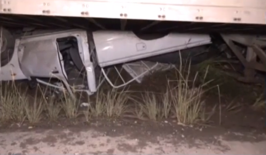 Afortunadamente, pese a que en el encontronazo participaron dos rastras y un pick up el que quedo con grandes daños en su carrocería, solo el conductor del pequeño automóvil Brandon Pinot salio con lesiones leves.
