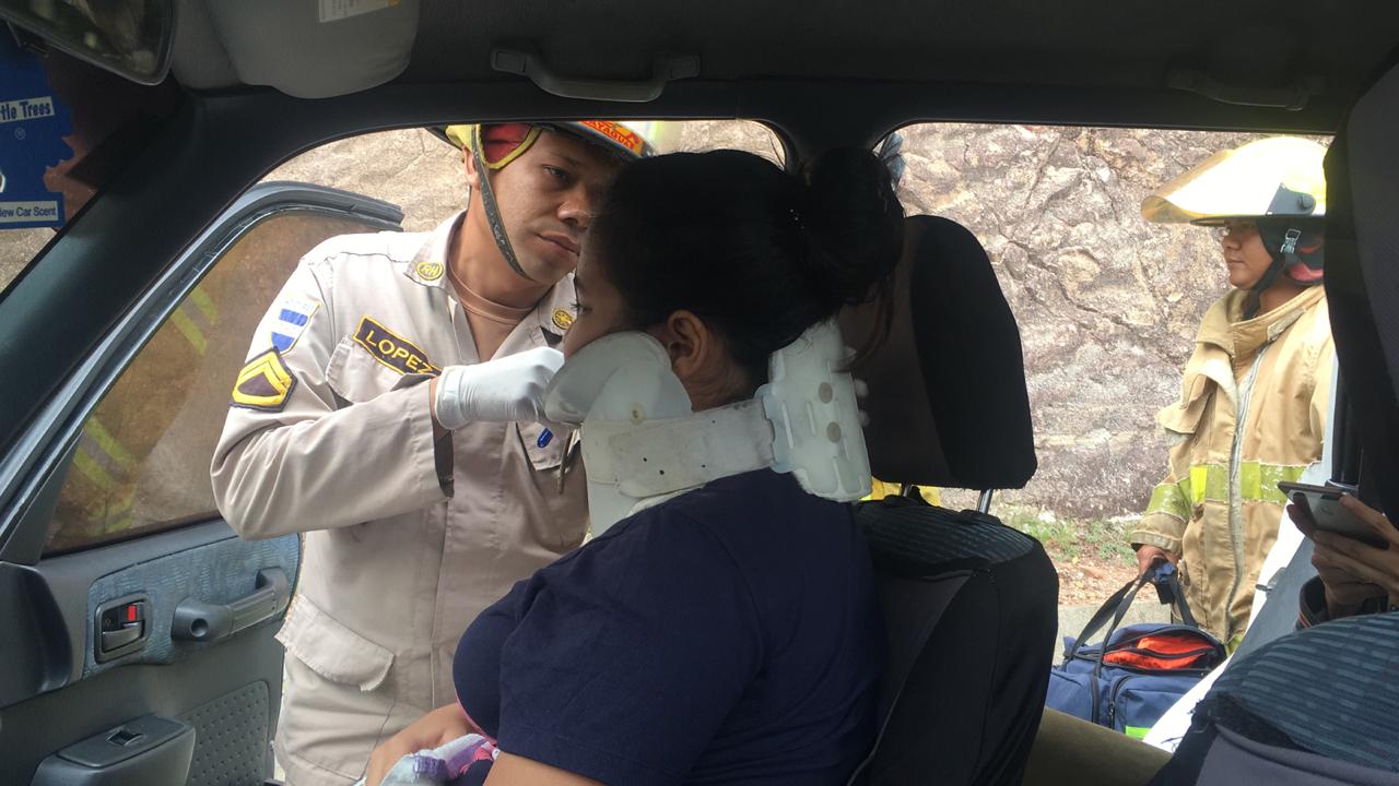 Bomberos de Comayagua reportan atención de accidente de tránsito tipo despiste en el km-49, deja como resultado dos féminas con lesiones menores, y daños al vehículo. Personal de bomberos brinda atención de primeros auxilios