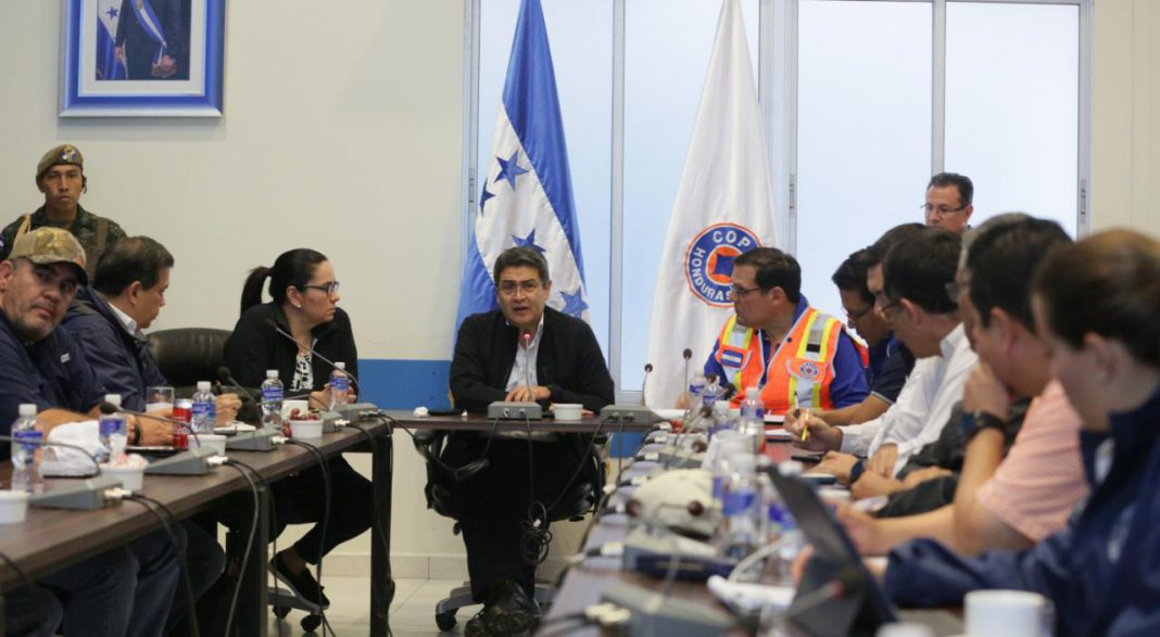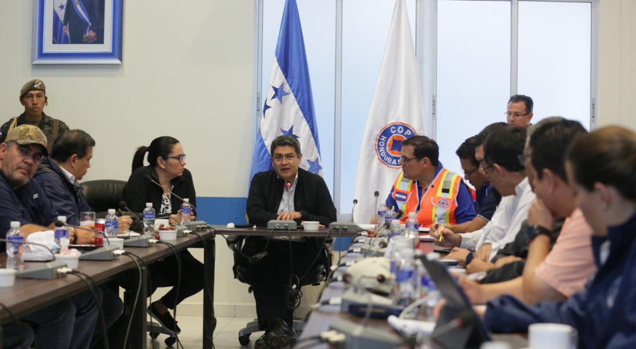 El Consejo de Ministros encabezado por el Presidente Juan Orlando Hernández, se encuentra reunido de emergencia en las oficinas del Comité Permanente de Contingencias, Copeco para abordar la situación del clima imperante en el país.