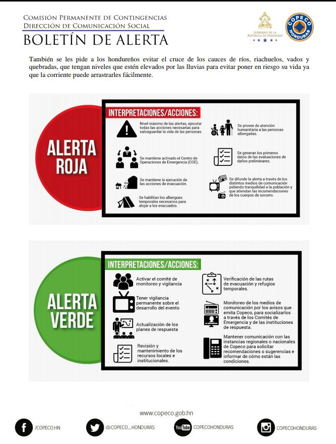 #Copeco declara #AlertaRoja en tres departamentos de #Honduras