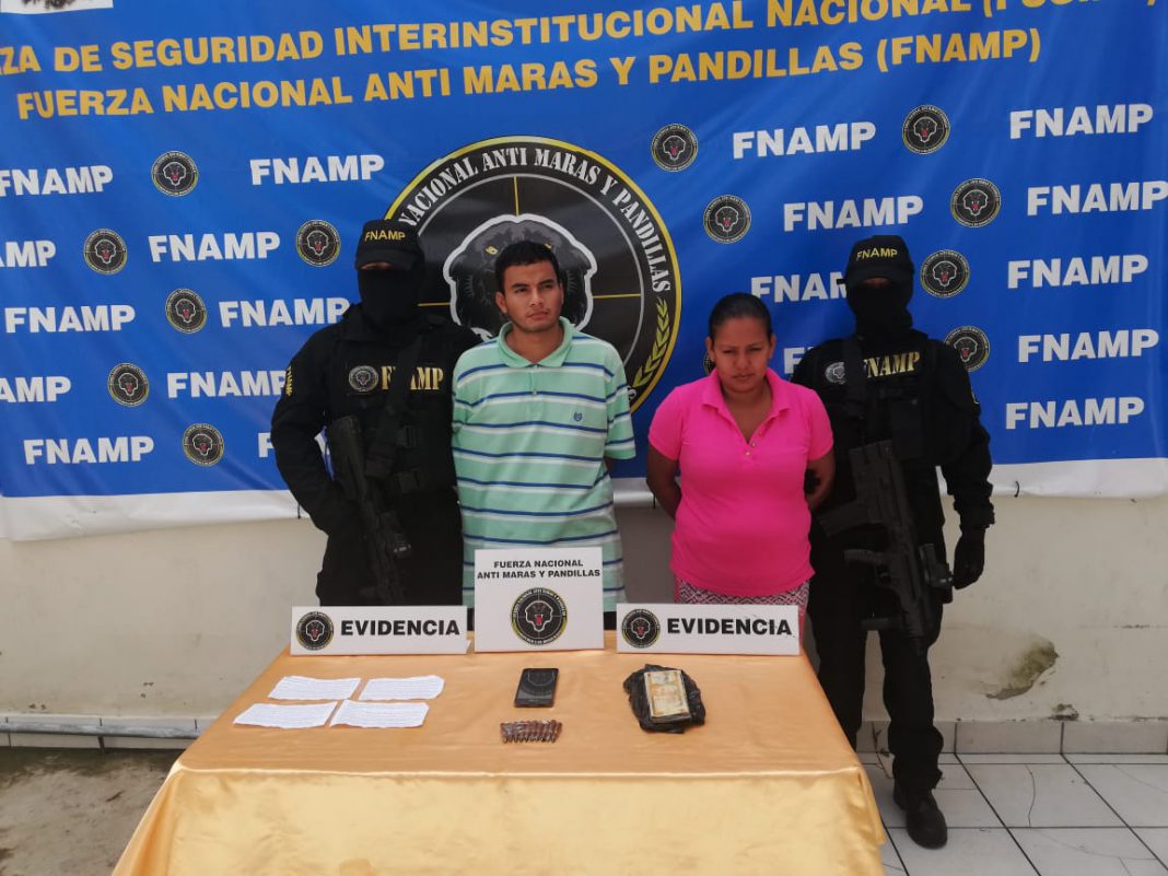Al momento de la captura a Erick Emanuel Sánchez alias “cabeza” y Maritza Espinoza Andino se les decomisó dinero, notas extorsivas y proyectiles para fusil.