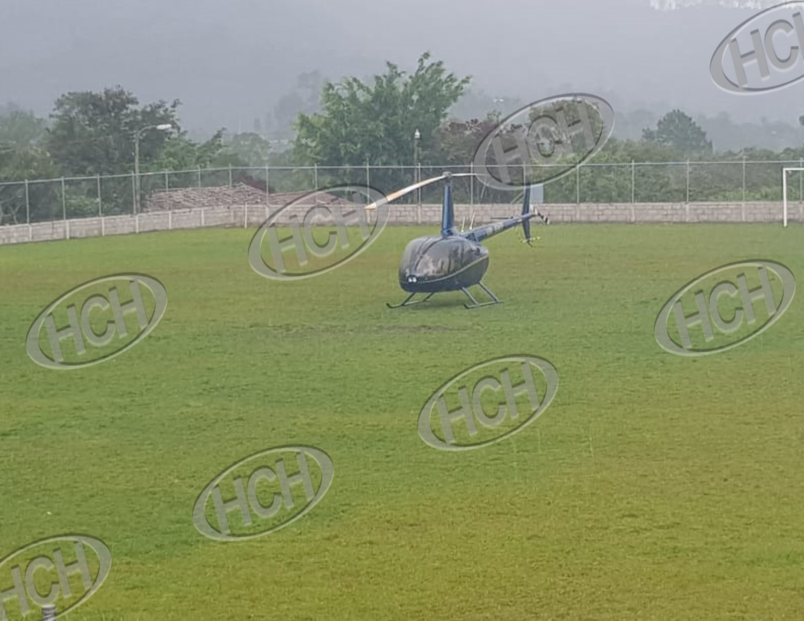 Helicóptero aterriza de emergencia en un campo de fútbol en Tutule, La Paz