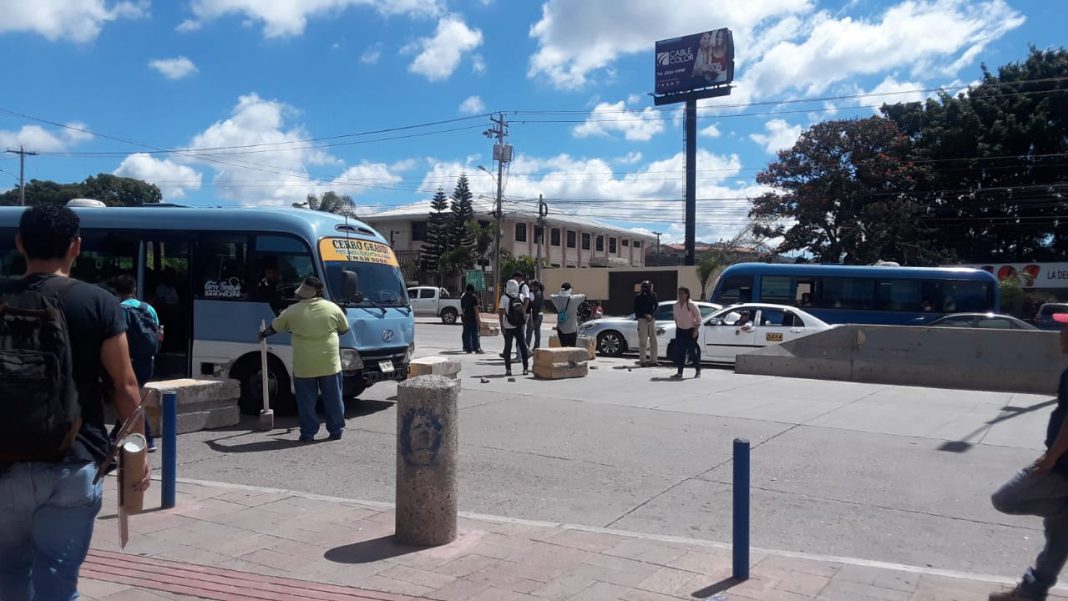 El universitario Movimiento Revolucionario Becerra en apoyo a la caravan de migrantes se tomaron este martes el bulevar Suyapa a la altura de la Plaza de las Banderas frente a la UNAH.