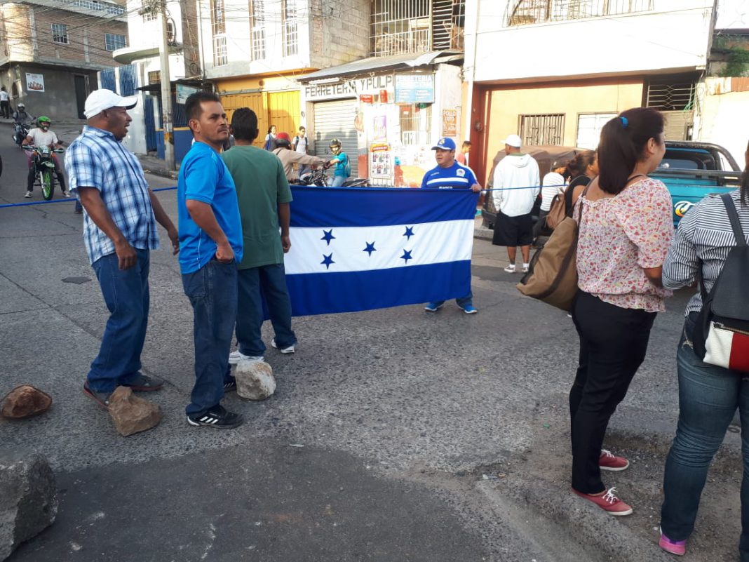 Los pobladores de la colonia La Soledad protestando por el mal estado de la calle principal se han tomado la vía principal de la Colonia San Francisco exigiendo a la Alcaldía Municipal del Distrito Central la reparación del acceso a los demás sectores aledaños.