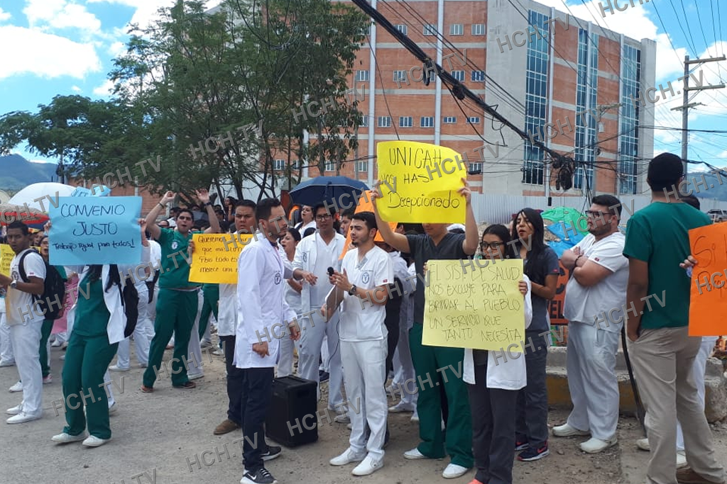 Esta vez apoyados por los médicos en servicio en los distintos hospitales estatales, los estudiantes paralizaron el tráfico en la entrada del centro de estudios exigiendo se lleguen a acuerdos que les permita realizar el servicio social a dos promociones de egresados.
