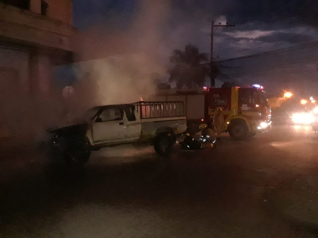 Vehículo se incendia saliendo de un taller mecánico en Juticalpa