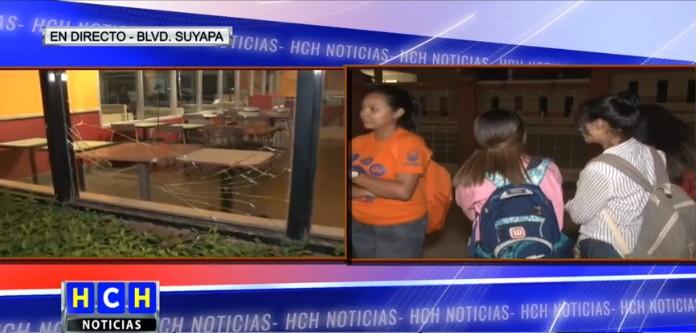 Luego de un ataque relámpago de un grupo de encapuchados, de un supuesto grupo de estudiantes universitarios, que salieron del campus de la UNAH a tomarse las vías del bulevar Suyapa e incluso atacar con piedras y bombas molotov un local de comidas rápidas que se encuentra a inmediaciones.
