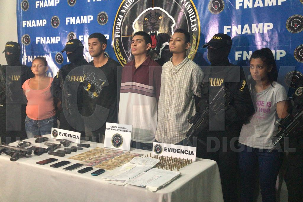 Cinco supuestos miembros de la pandilla 18 fueron capturados por la fuerza nacional anti maras y pandillas (FNAMP) en la colonia Calpules de San Pedro Sula.