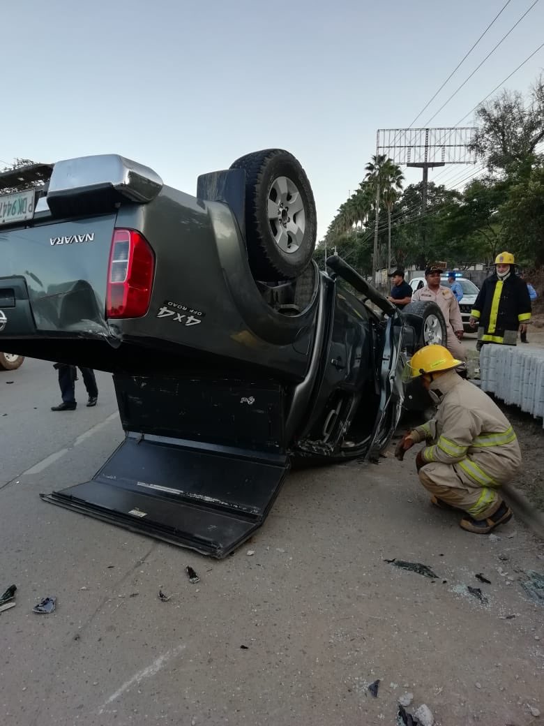 Una persona herida, un pick up placa pdk 9447 con las llantas para arriba es el resultado de un accidente en el bulevar del sur en las cercanías de campo AGAS de San Pedro Sula.