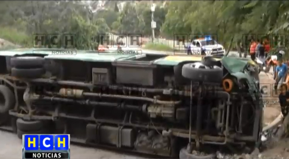 El bus que circulaba por una pendiente de la colonia Quezada perdió el control cuando una llanta se estalló lo que hizo que se fuera a impactar contra el bordillo que provocó el volcamiento.