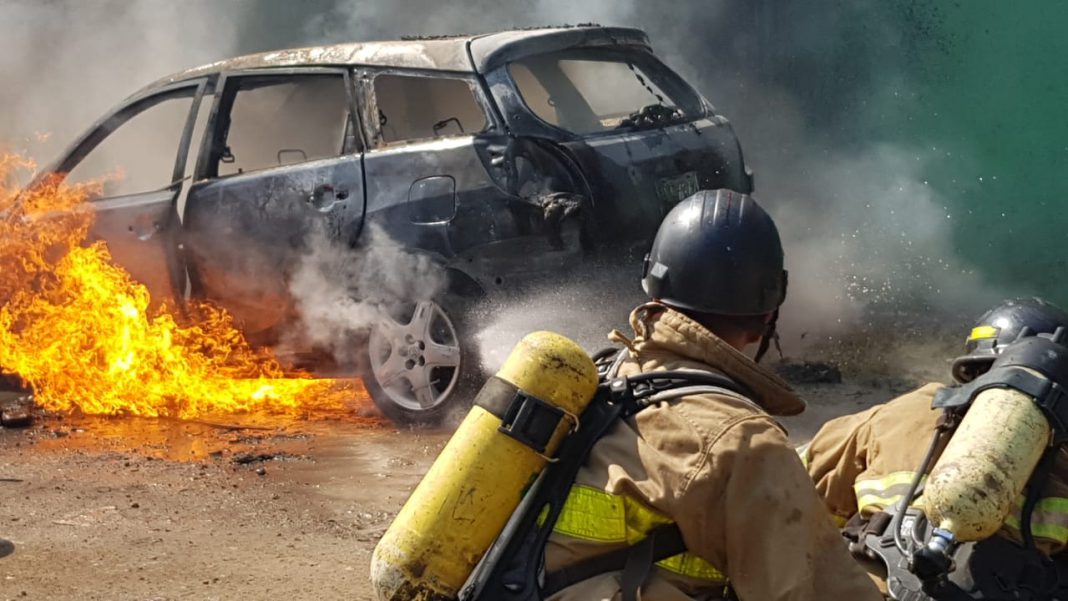 Este día se informó al Cuerpo de Bomberos de La Ceiba el incendio de un vehículo en un sector de esta ciudad.