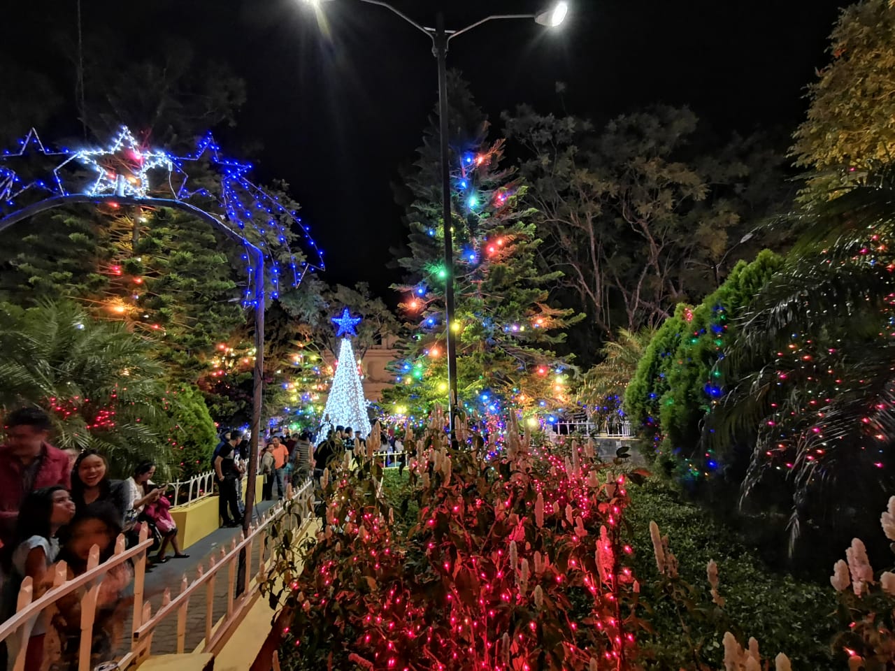 Pobladores de Sabanagrande inauguran temporada navideña con encendido de árbol en el parque de esta ciudad