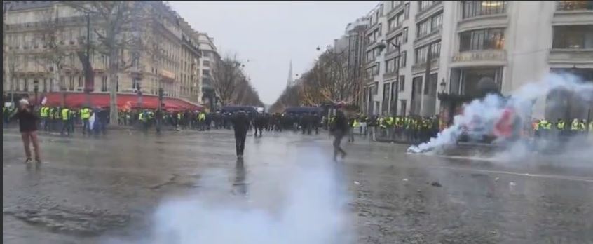 Los Campos Elíseos, en amarillo: La Policía usa gas lacrimógeno contra manifestantes en París