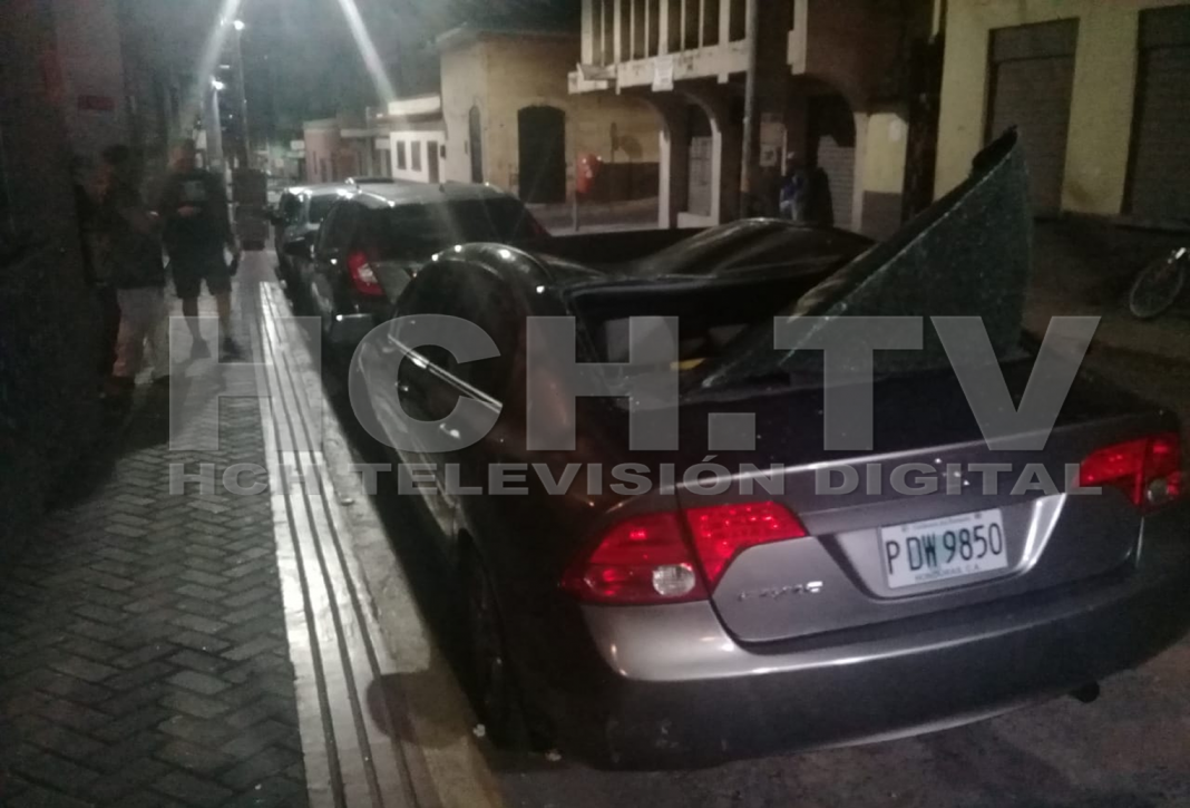 Luego de lanzarse del 5to piso del hotel, afortunadamente Raúl Oquelí cayó sobre un vehículo que estaba estacionado justo bajo de la parte donde él se lanzó.