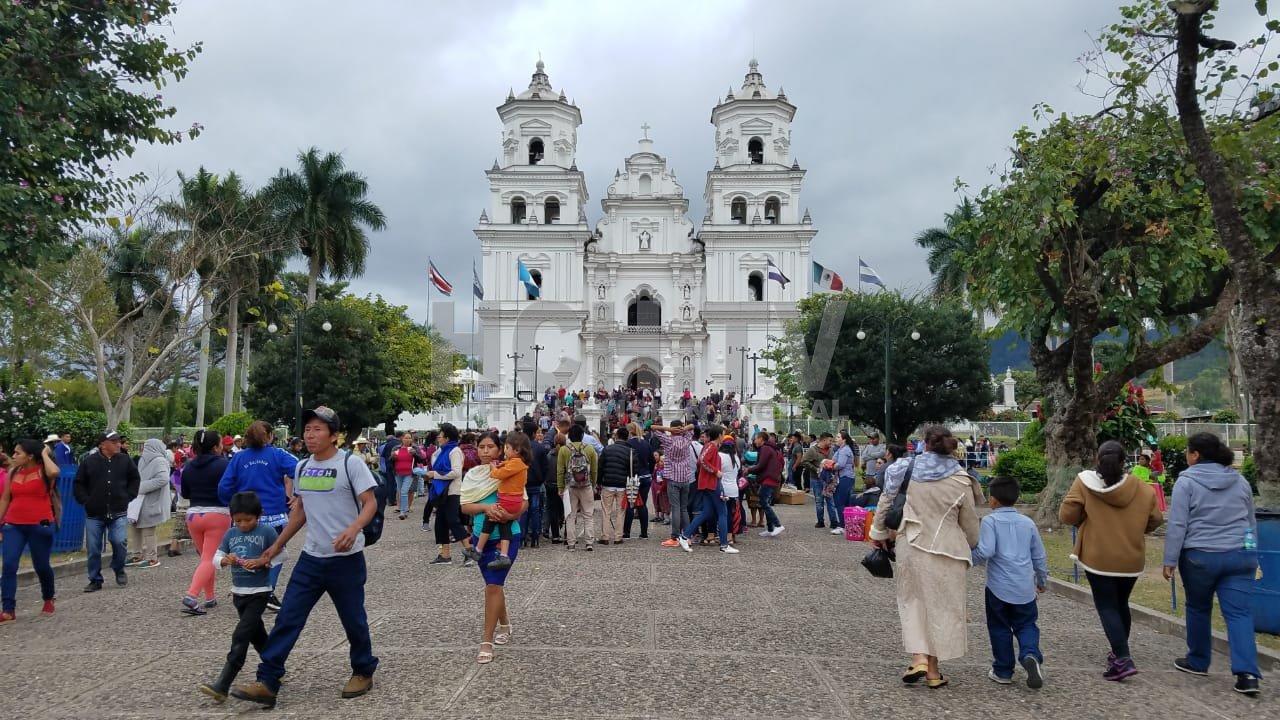 Como cada 15 de enero la feligresía católica llega en peregrinación a la oriental Esquipulas, fronteriza con Honduras, desde donde se desplazan miles de peregrinos hondureños de todos los puntos.