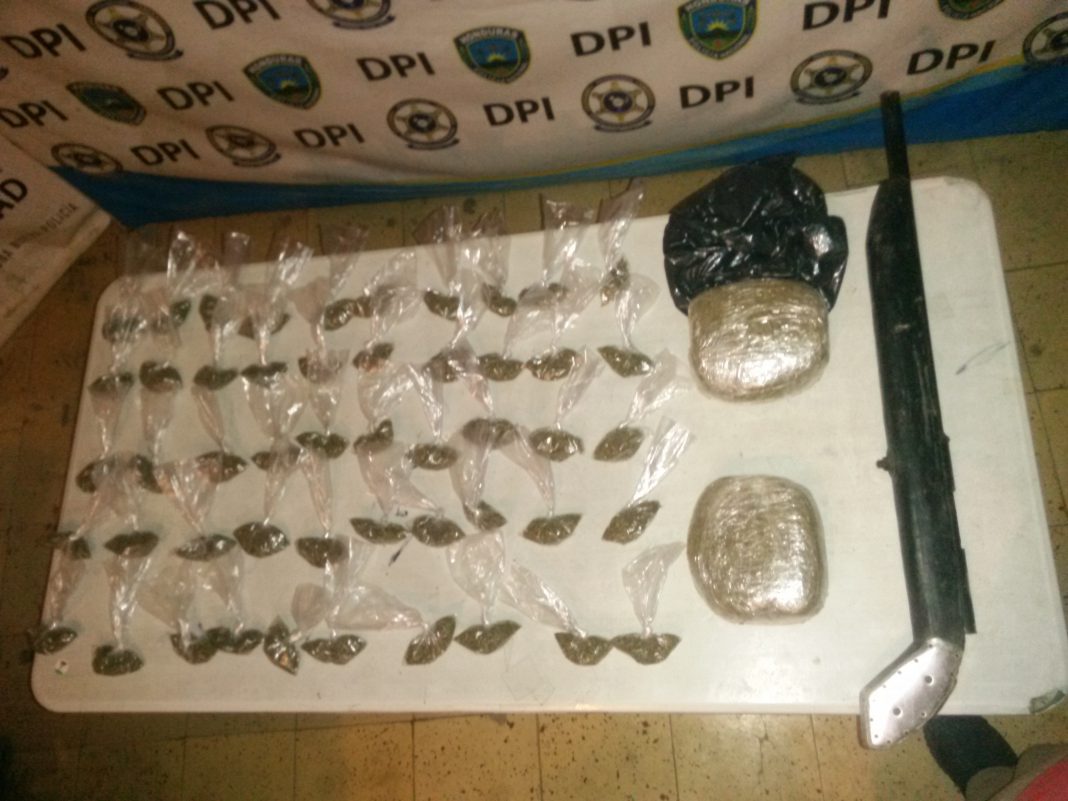 El dia de hoy sabado 19 de enero del año 2019, a eso de las 16:05 horas, en el lugar conocido como aldea El 45, Municipio de El Progreso, Yoro mediante labores de vigilancia y seguimiento se le dio detención a UNA (1) PERSONA DEL SEXO MASCULINO, de 30 años de edad, Hondureño, Jornalero, Originario de Santa Bárbara y Residente en La aldea El 45, Municipio de El Progreso, Yoro, Quién fue detenido Por Suponerlo Responsable por la Comisión de los Delitos de POSESIÓN PARA EL TRÁFICO ILÍCITO DE DROGAS Y PORTACIÓN DE ARMA DE FUEGO DE FABRICACIÓN CASERA DE USO PROHIBIDO, DELITOS en perjuicio de la Salud de la Población del Estado de Honduras, y La Seguridad Interior del Estado de Honduras.