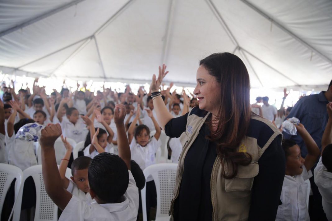 La Primera Dama resaltó que la entrega de los uniformes escolares genera, además del ahorro en la economía de las familias, el fortalecimiento de la identidad patria entre los educandos.
