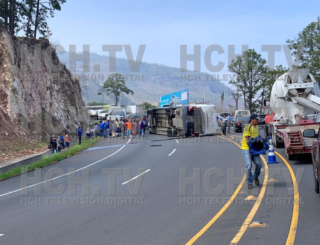 Una unidad tipo «coaster» de la Academia Nacional de Policía (ANAPO) que trasladaba al grupo de mujeres a Siguatepeque a una celebración del día de la Madres, perdió el control en una curva, derrapó cayendo sobre un costado.