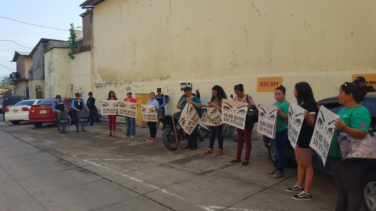 Frente a las instalaciones de la Dirección Policial de Investigación un grupo de mujeres organizadas realizaron un plantón exigiendo justicia contra las violaciones.