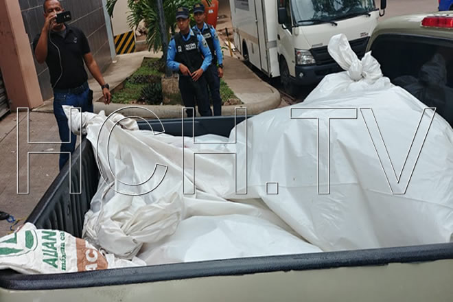 A bordo de un vehículo de la Fiscalía Regional de la Esperanza, Intibucá llegaron a la morgue judicial capitalina los cuerpos de los cinco ciudadanos que fueron acribillados Intibucá.